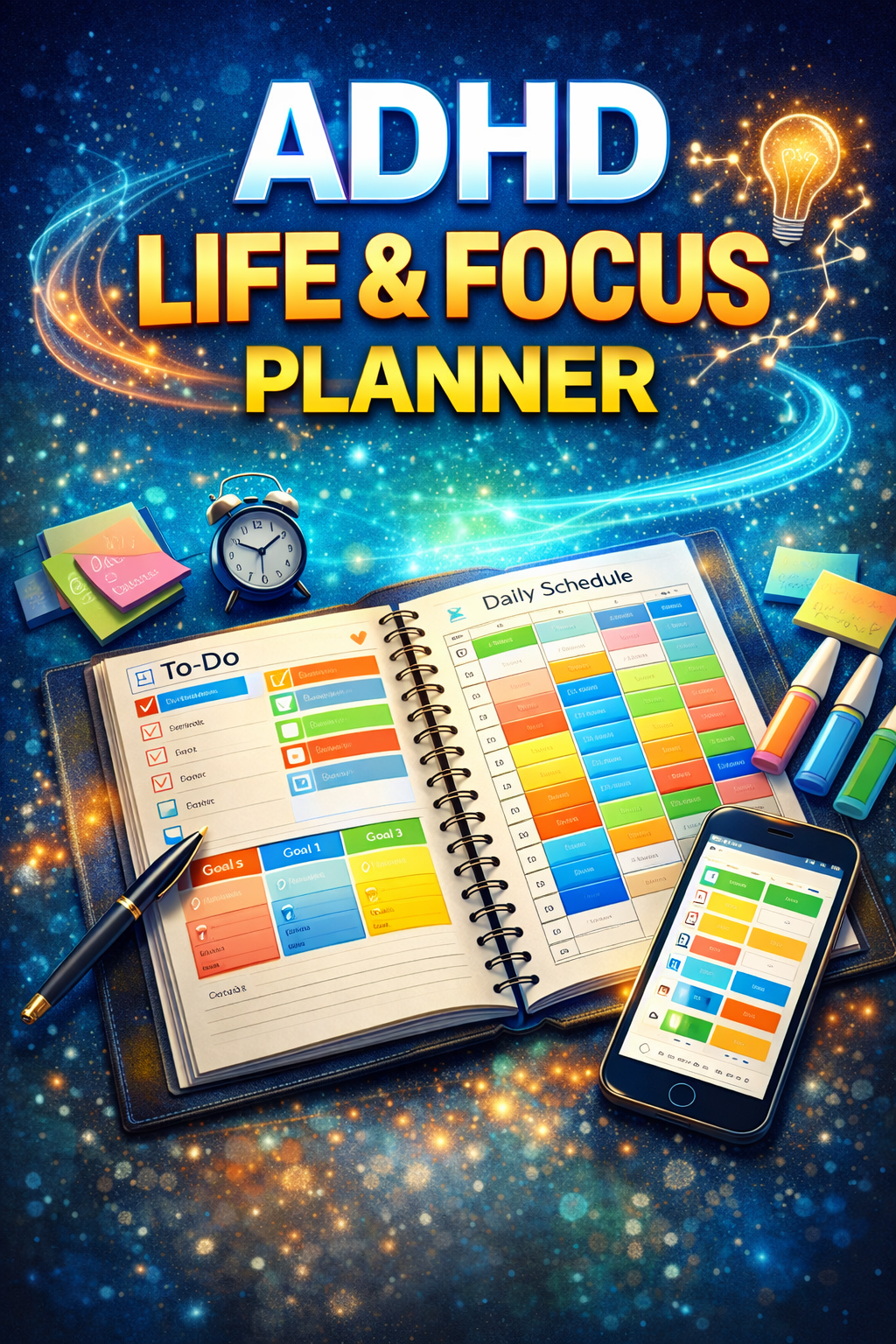 The ADHD Life & Focus Planner is specifically designed to help you stay on top of your tasks, goals, and priorities. Whether you’re juggling work, school, or household responsibilities, this thoughtfully crafted planner brings clarity and structure to your daily life.