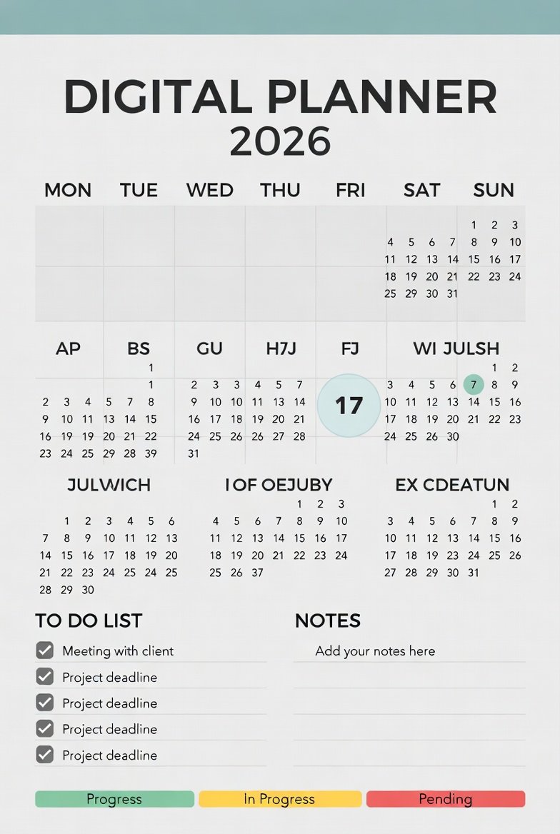 Perfect for professionals, students, and anyone looking to optimize their time, the Digital Planner 2026 is your go-to tool for a productive and well-organized year. Embrace clarity and focus with features that flex to fit your lifestyle.