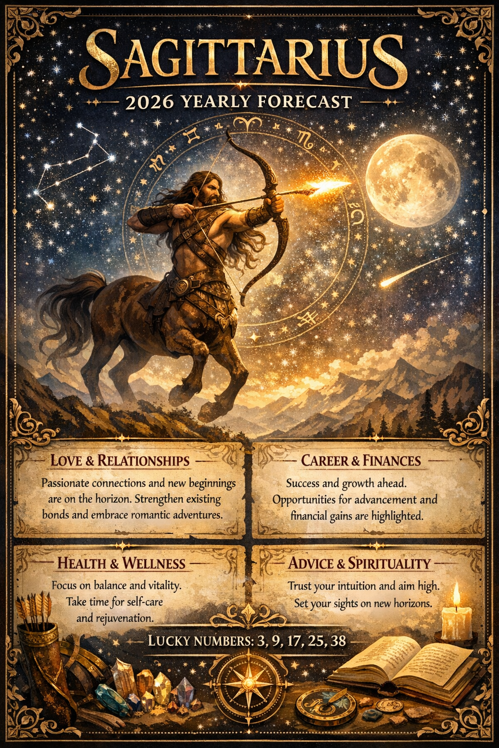 The Sagittarius 2026 Yearly Forecast PDF is your personal roadmap for a transformative and exciting year. Designed with Sagittarius energy in mind, this guide offers unique insights to help you align with the cosmic flow and make the most of every opportunity in 2026.